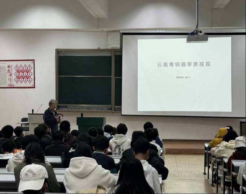詹教授围绕上古云南民族文化演进发展的基本进程,揭示云南青铜器的发展演变过程,深入剖析其文化与文明(包括物质文明和精神文明),以及先秦至汉代主要文化类型的审美心理、审美意识及其文化性特征和美学特征。詹教授为我们呈现了一场精彩纷呈的学术盛宴,带同学们领略云南青铜器铸造与自然生态、文化生态之间互动所形成的审美关系、审美价值和美学意义。