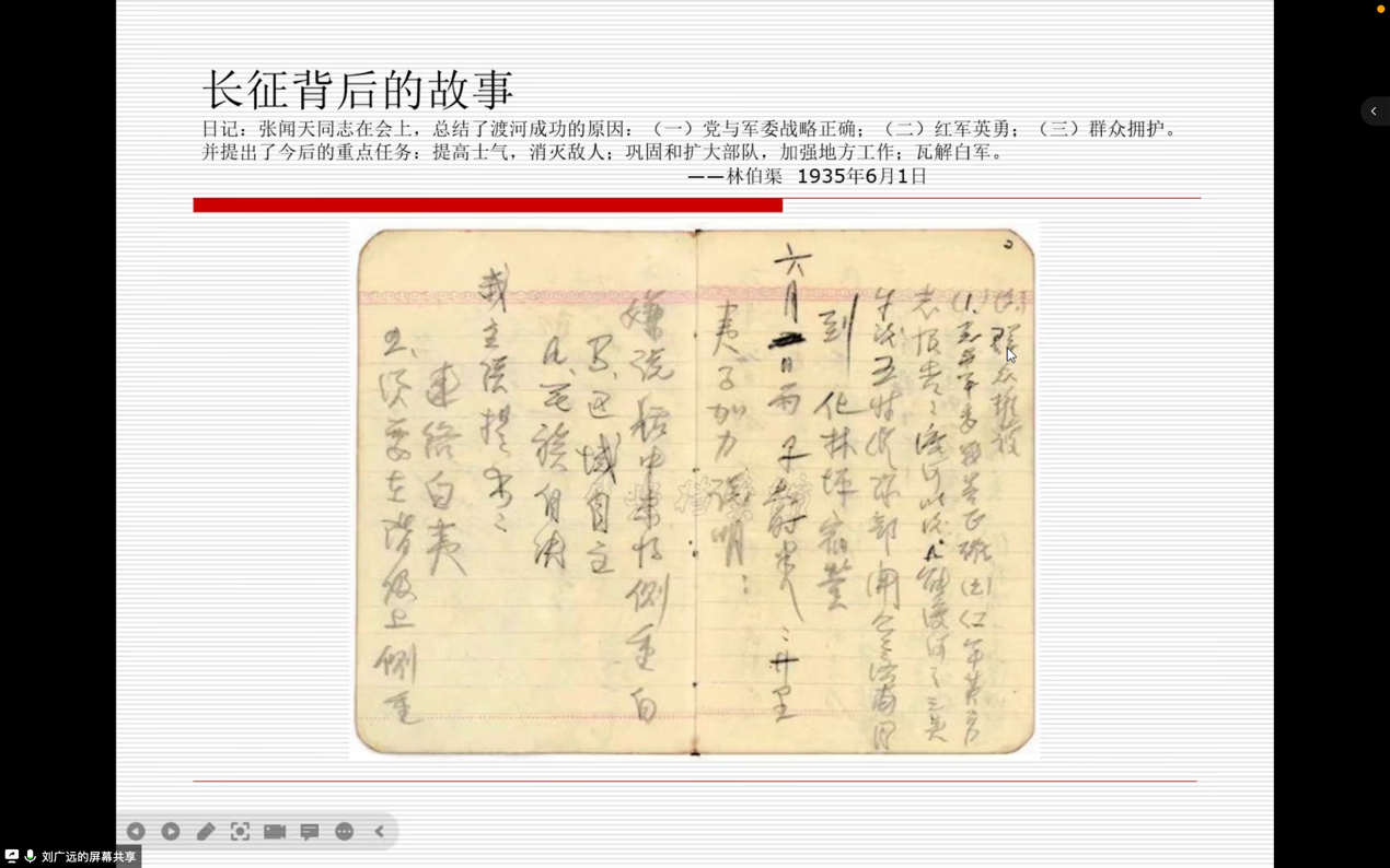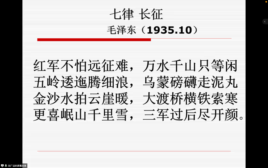 刘老师在开篇即引用了习近平总书记在纪念红军长征胜利80周年大会上的讲话:“伟大长征精神,就是把全国人民和中华民族的根本利益看得高于一切,坚定革命的理想和信念,坚信正义事业必然胜利的精神;就是为了救国救民,不怕任何艰难险阻,不惜付出一切牺牲的精神;就是坚持独立自主、实事求是,一切从实际出发的精神;就是顾全大局、严守纪律、紧密团结的精神;就是紧紧依靠人民群众,同人民群众生死相依、患难与共、艰苦奋斗的精神。”在当前疫情尚未结束的形势下,讲讲长征精神与长征文学有着特别的意义。长征在身体上虽然结束了,但精神上的长征却从未中断。