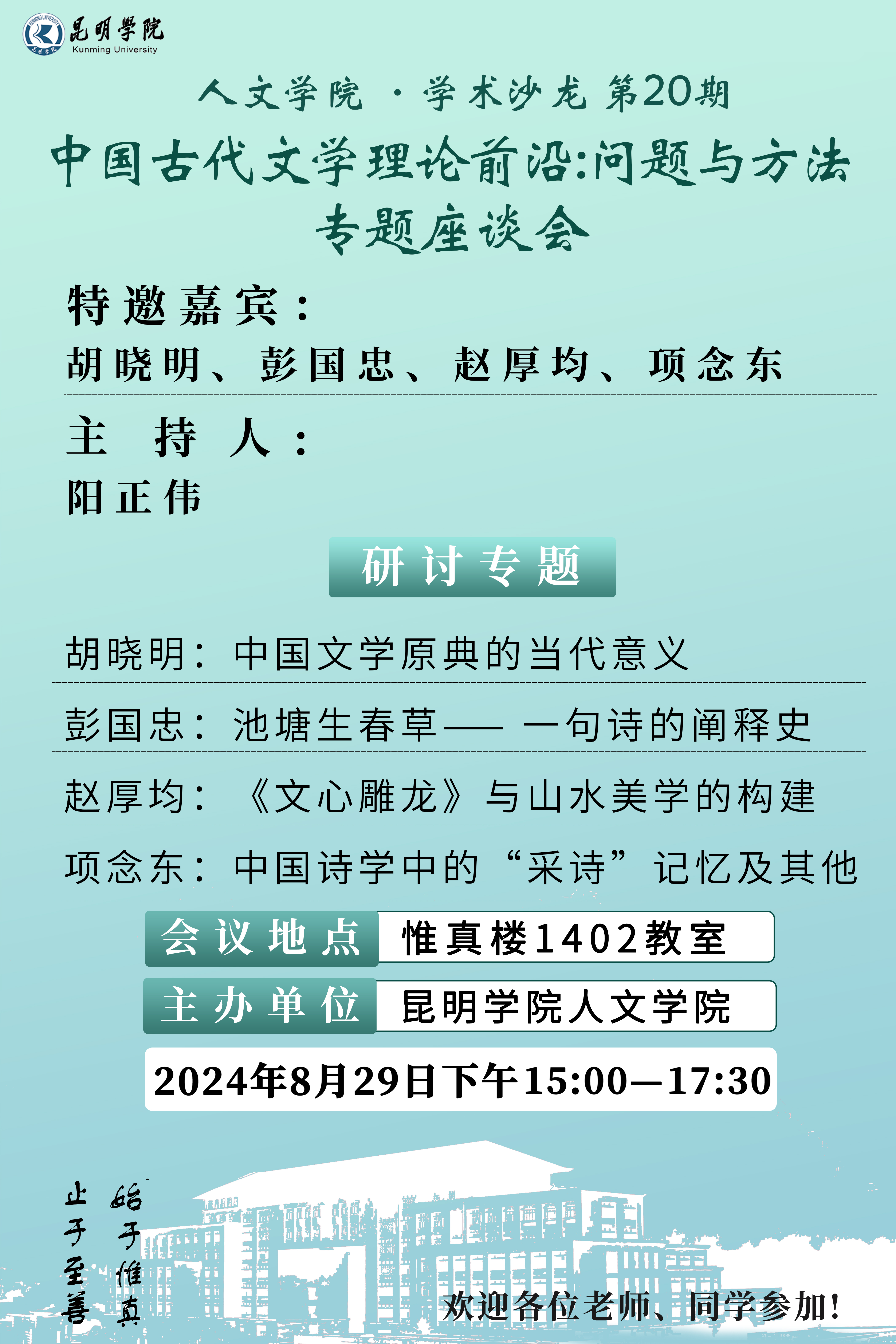 胡晓明教授、彭国忠教授、赵厚均教授、项念东教授、主讲学术沙龙 第20期,欢迎参加!!