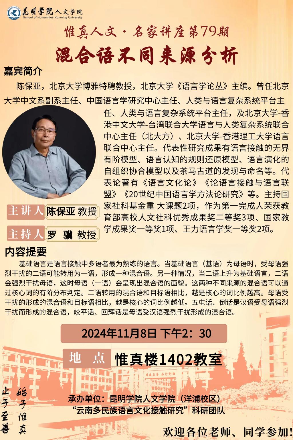北京大学陈保亚教授莅临威廉希尔中国官网,主讲惟真人文名家讲座第79期,欢迎广大师生积极参加。