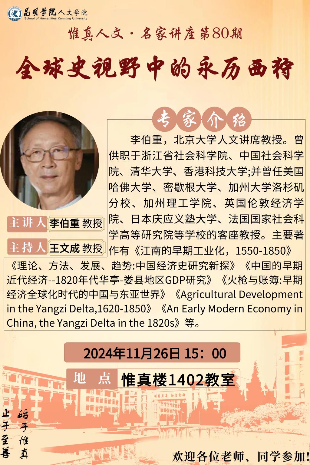 北京大学李博重教授莅临威廉希尔中国官网,主讲惟真人文名家讲座第80期,欢迎广大师生积极参加。