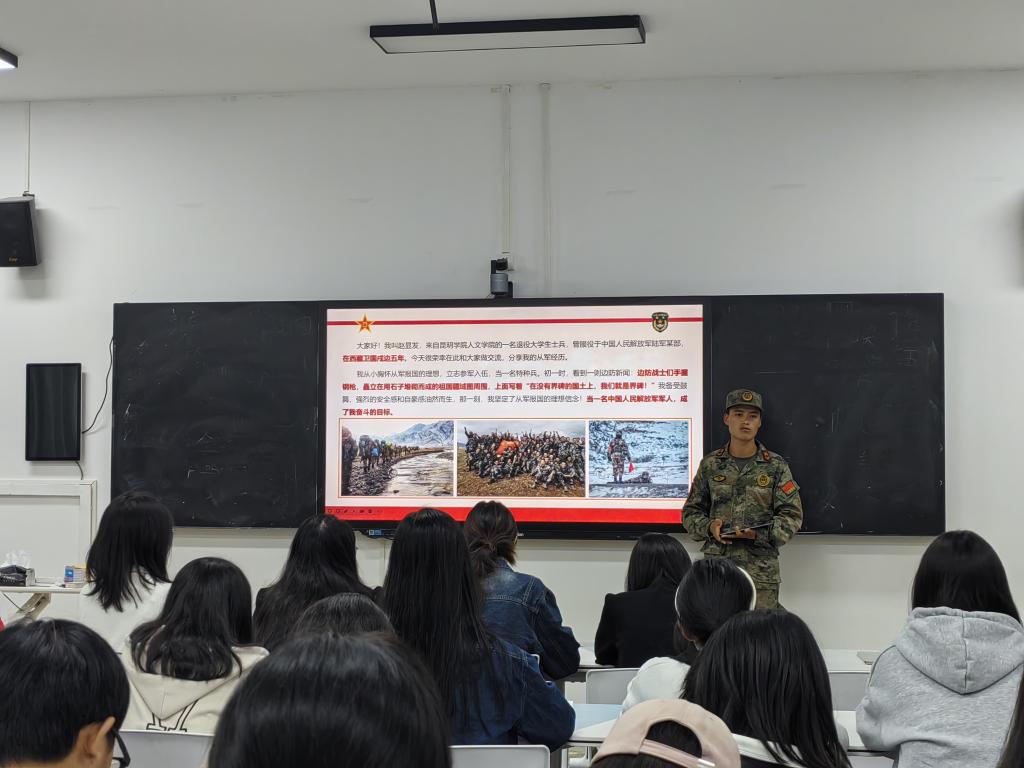 “一朝迷彩,汗水浇灌成长,酸甜苦辣伴随青春梦想。”赵显发谈到,当兵是他青春热血澎湃后的行动自觉,五年在西藏卫国戍边的经历是他对青春最好的诠释,也是成长最好的印记。赵显发同学用真挚的情感和热爱,展现当代军人的忠诚与担当,让在场的同学深受启发和感动。