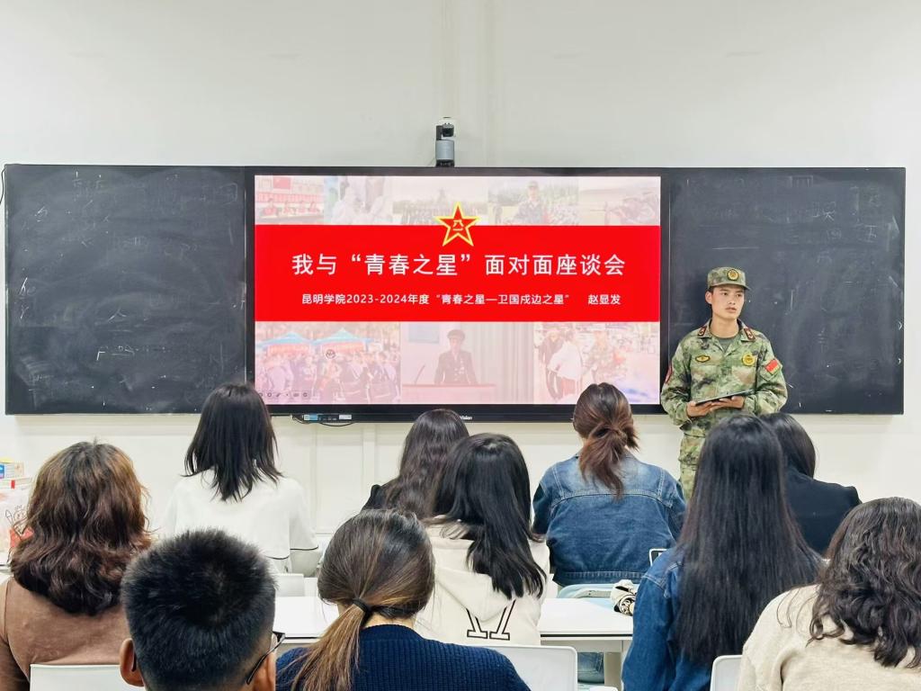 为深入挖掘和宣传典型榜样,发挥朋辈引导互助作用,构建员工成长共同体,威廉希尔中国官网团委、员工会于2024年10月20日在惟真楼1402举办“我与青春之星面对面”座谈会。此次座谈会邀请到williamhill官网2023~2024年度“青春之星——卫国戍边之星”获得者威廉希尔中国官网赵显发与同学们进行交流分享。