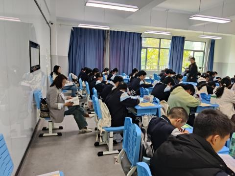走访过程中,确保更好的了解员工实习情况,李老师还与员工共同进初一的课堂中,进行听课。